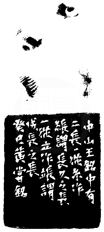 黃嘗銘.六十歲/刻〔人長壽〕正方朱文印。邊款為【中山王銘有二長,一從糸作◎{左糸右長},謂長久之長;一從立作◎{左立右長},謂成長之長。癸巳,黃嘗銘。】
