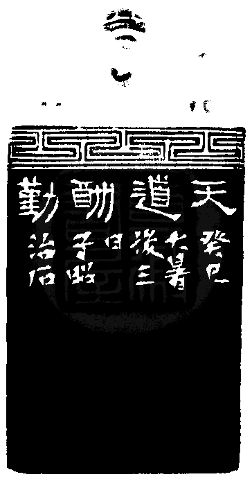 黃嘗銘.六十歲/刻〔天道酬勤〕正方朱文印。邊款為【天道酬勤。癸巳大暑後三日,子昭治石。】