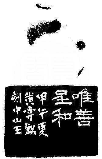 黃嘗銘.六十一歲/刻〔唯善呈和〕正方朱文印。邊款為【唯善呈和。甲午夏,黃嘗銘刻中山王。】芙蓉石。