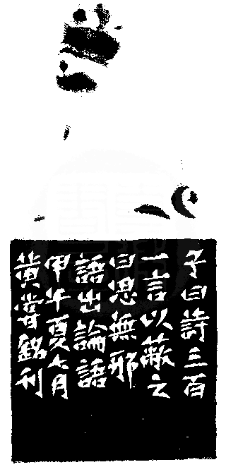 黃嘗銘.六十一歲/刻〔思無邪〕正方加框白文印。邊款為【子曰:詩三百,一言以蔽之,曰思無邪。語出論語,甲午夏七月,黃嘗銘刻。】芙蓉石。