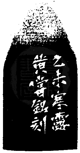 黃嘗銘.六十二歲/刻〔般若〕長方白文印。邊款為【乙未寒露,黃嘗銘刻。】芙蓉石。