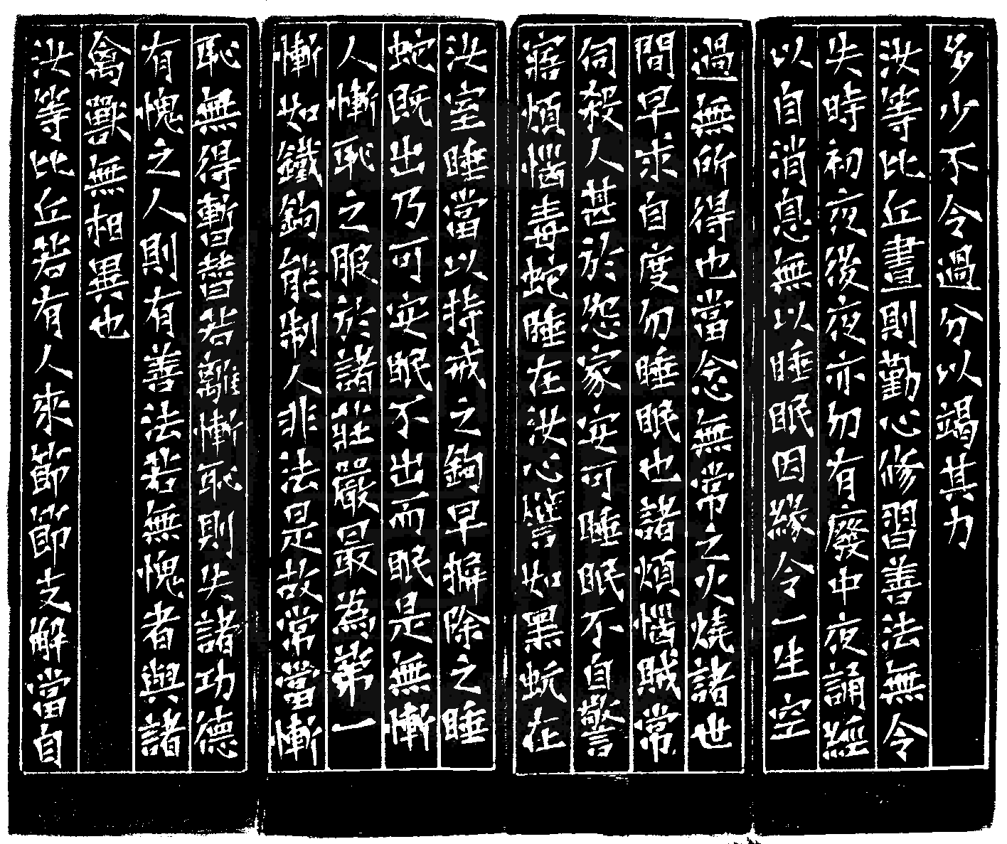 | | 印文:常當慚恥 | | 約 橫 2.9 X 豎 2.9 公分 印面圖 | | 黃嘗銘.六十二歲/刻〔常當慚恥〕正方白文印。邊款為【多少,不令過分,以竭其力。汝等比丘,晝則勤心修習善法,無令失時;初夜後夜,亦勿有廢。中夜誦經,以自消息,無以睡眠因緣,令一生空過,無所得也。當念無常之火,燒諸世間,早求自度,勿睡眠也。諸煩惱賊常伺殺人,甚於怨家,安可睡眠,不自警寤?煩惱毒蛇睡在汝心,譬如黑蚖在汝室睡,當以持戒之鉤早摒除之。睡蛇既出,乃可安眠;不出而眠,是無慚人!慚恥之服,於諸莊嚴,最為第一。慚如鐵鉤,能制人非法,是故常當慚恥,無得暫替。若離慚恥,則失諸功德。有愧之人,則有善法;若無愧者,與諸禽獸無相異也。汝等比丘!若有人來節節支解,當自】巴林石。圓頂。 2015 年刻 |