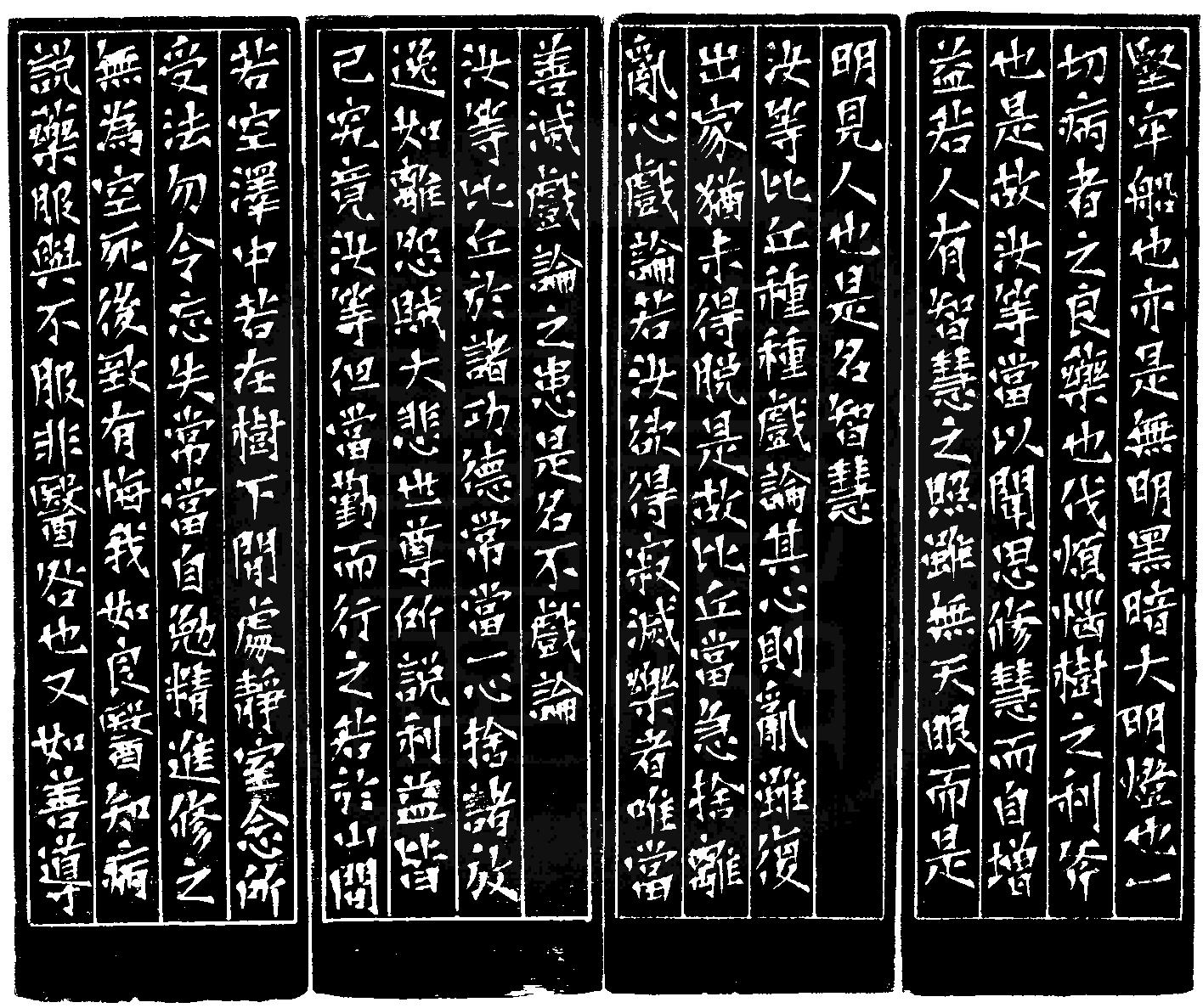 | | 印文:智慧不戲論 | | 約 橫 2.8 X 豎 2.9 公分 邊款圖 | | 黃嘗銘.六十二歲/刻〔智慧不戲論〕正方朱白文印。邊款為【堅牢船也,亦是無明黑暗大明燈也,一切病者之良藥也,伐煩惱樹之利斧也。是故汝等,當以聞思修慧而自增益。若人有智慧之照,雖無天眼,而是明見人也。是名智慧。汝等比丘,種種戲論,其心則亂,雖復出家,猶未得脫。是故比丘,當急捨離亂心戲論。若汝欲得寂滅樂者,唯當善滅戲論之患,是名不戲論。汝等比丘,於諸功德,常當一心,捨諸放逸,如離怨賊。大悲世尊所說利益,皆已究竟,汝等但當勤而行之。若於山間,若空澤中,若在樹下,閒處靜室,念所受法,勿令忘失,常當自勉,精進修之,無為空死,後致有悔。我如良醫,知病說藥,服與不服,非醫咎也。又如善導,】巴林石。圓頂。 2015 年刻 |