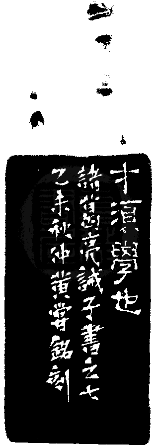 黃嘗銘.六十二歲/刻〔才須學也〕正方朱文印。邊款為【才須學也。諸葛亮誡子書之七,乙未秋仲,黃嘗銘刻。】老撾石。
