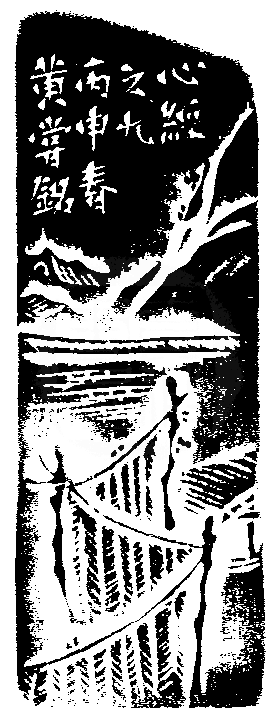 黃嘗銘.六十三歲/刻〔空即是色〕正方朱白文印。邊款為【心經之九。丙申春,黃嘗銘。】昌化黃凍石。山水薄意。