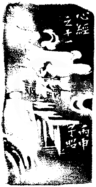 黃嘗銘.六十三歲/刻〔亦復如是〕長方朱文印。邊款為【心經之十一。丙申,子昭。】昌化黃凍石。山水薄意。