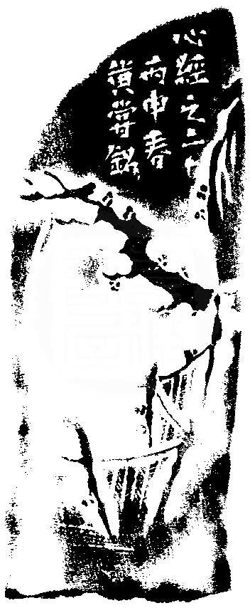 黃嘗銘.六十三歲/刻〔無色聲香味觸法〕正方白文印。邊款為【心經之二十。丙申春,黃嘗銘。】昌化黃凍石。山水薄意。