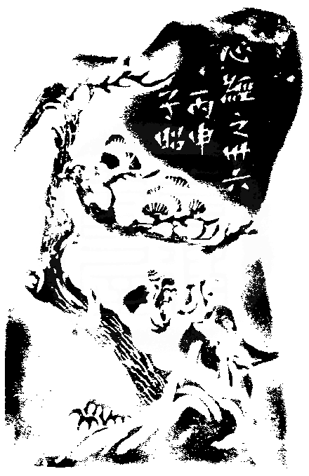黃嘗銘.六十三歲/刻〔究竟涅槃〕長方白文印。邊款為【心經之卅六。丙申,子昭。】昌化黃凍石。山水薄意。