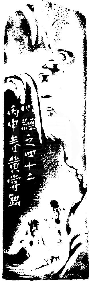 黃嘗銘.六十三歲/刻〔是大明咒〕長方白文印。邊款為【心經之四十二。丙申春,黃嘗銘。】昌化黃凍石。山水薄意。