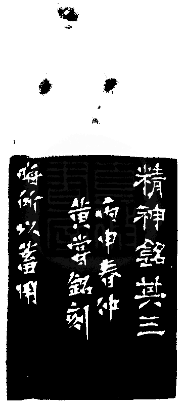 黃嘗銘.六十三歲/刻〔晦所以蓄用〕正方白文印。邊款為【晦所以蓄用。精神銘其三。丙申春仲,黃嘗銘刻。】老撾石。鹿鈕。
