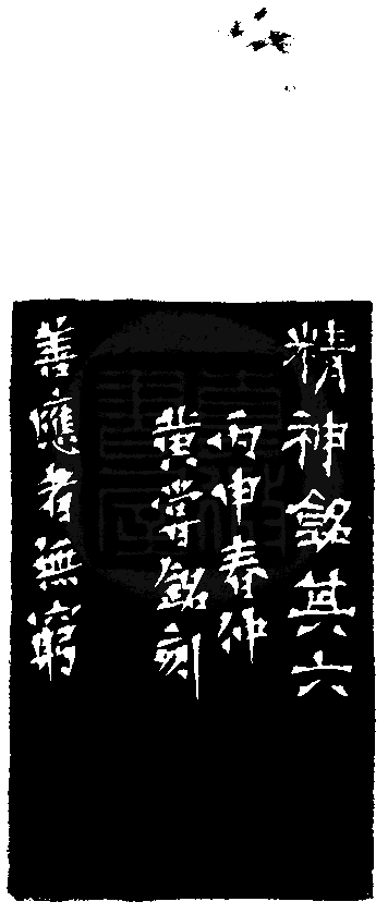 黃嘗銘.六十三歲/刻〔善應者無窮〕正方朱文印。邊款為【善應者無窮。精神銘其六。丙申春仲,黃嘗銘刻。】老撾石。獸鈕。