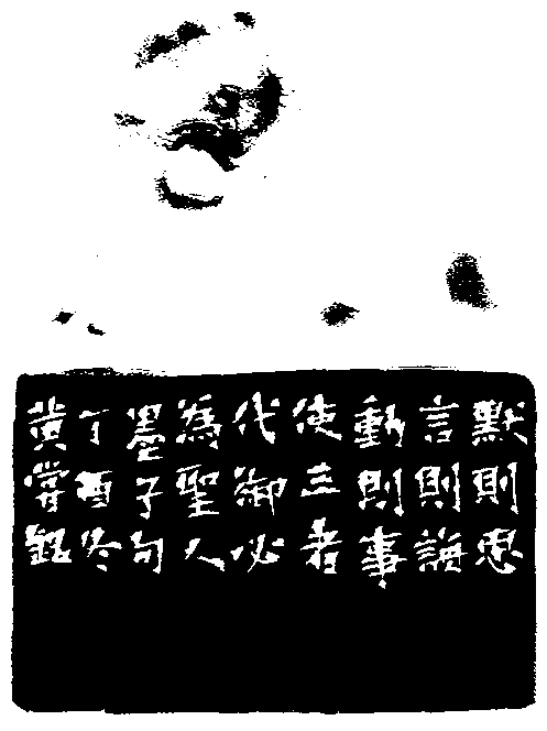黃嘗銘.六十四歲/刻〔默思言誨動事〕長方朱文印。邊款為【默則思,言則誨,動則事,使三者代御,必為聖人。《墨子》句。丁酉冬,黃嘗銘。】老撾北白凍石。古獸鈕。