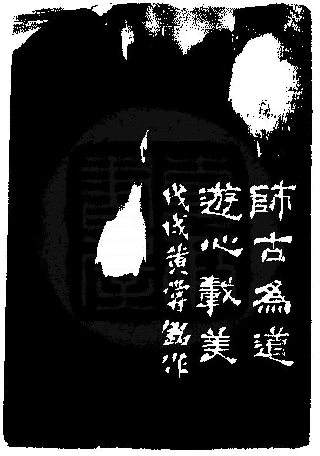 黃嘗銘.六十五歲/刻〔師古遊心〕長方白文印。邊款為【師古為道,遊心載美。戊戌,黃嘗銘作。】芙蓉石。