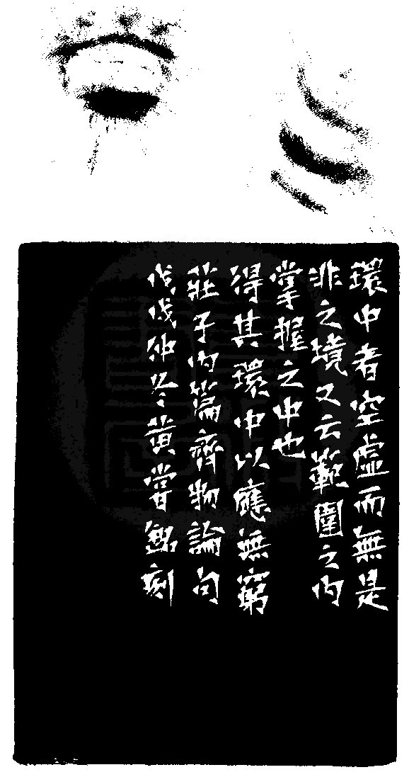 黃嘗銘.六十五歲/刻〔得其環中以應無窮〕正方加框白文印。邊款為【環中者,空虛而無是非之境。又云:範圍之內,掌握之中也。得其環中,以應無窮。《莊子.內篇.齊物論》句。戊戌仲冬,黃嘗銘刻。】老撾田黃石。獸鈕。