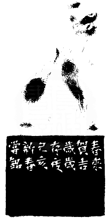 黃嘗銘.六十六歲/刻〔春吉〕長方朱白文印。邊款為【春來賀吉,歲歲存庋。己亥新春,嘗銘。】芙蓉石。獸鈕。