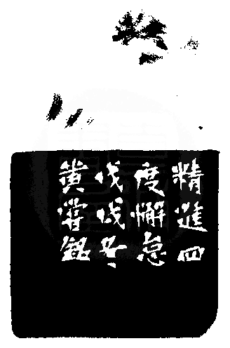 黃嘗銘.六十五歲/刻〔精進〕長方加框白文印。邊款為【精進四度懈怠。戊戌冬,黃嘗銘。】老撾田黃石。獸鈕。