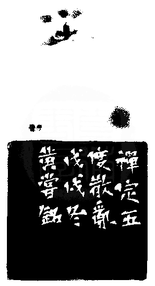 黃嘗銘.六十五歲/刻〔禪定〕正方白文縱格印。邊款為【禪定五度散亂。戊戌冬,黃嘗銘。】老撾田黃石。獸鈕。