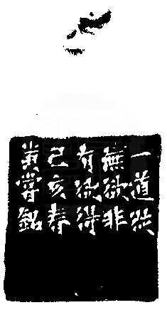 黃嘗銘.六十六歲/刻〔無欲〕正方朱文寬邊印。邊款為【一道從無欲,非有欲得。己亥春,黃嘗銘。】老撾田黃石。獸鈕。