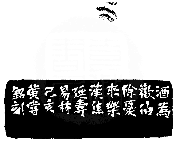 黃嘗銘.六十六歲/刻〔酒為歡伯除憂來樂〕正方朱文印。邊款為【酒為歡伯,除憂來樂。漢焦延壽《易林》。己亥,黃嘗銘刻。】老撾田黃石。獸鈕。