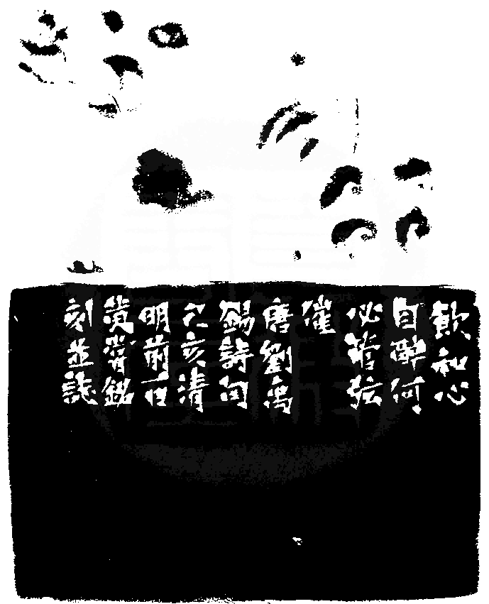 黃嘗銘.六十六歲/刻〔飲和心自醉〕長方朱文印。邊款為【飲和心自醉,何必管弦催。唐劉禹錫詩句。己亥清明前一日,黃嘗銘刻並誌。】老撾北黃石。獨角獸鈕。