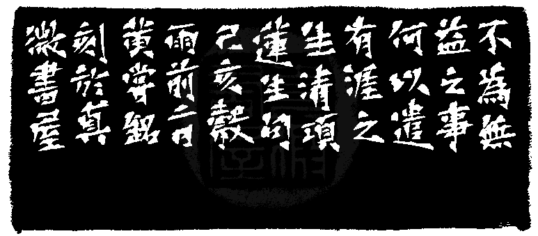 黃嘗銘.六十六歲/刻〔樂為無益事戲遣有涯生〕正方朱文印。邊款為【不為無益之事,何以遣有涯之生。清項蓮生句。己亥穀雨前二日,黃嘗銘刻於真微書屋。】老撾石。鼻鈕。