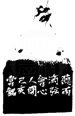 黃嘗銘.六十六歲/刻〔聽雨〕正方加框白文印。邊款為【聽雨滴弦,會心人間。己亥,嘗銘。】老撾田黃石。獸鈕。