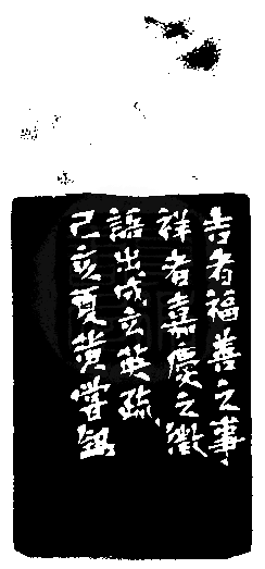 黃嘗銘.六十六歲/刻〔吉祥〕長方朱白文印。邊款為【吉者福善之事,祥者嘉慶之徵。語出成英玄疏。己亥夏,黃嘗銘刻。】老撾田黃石。獸鈕。