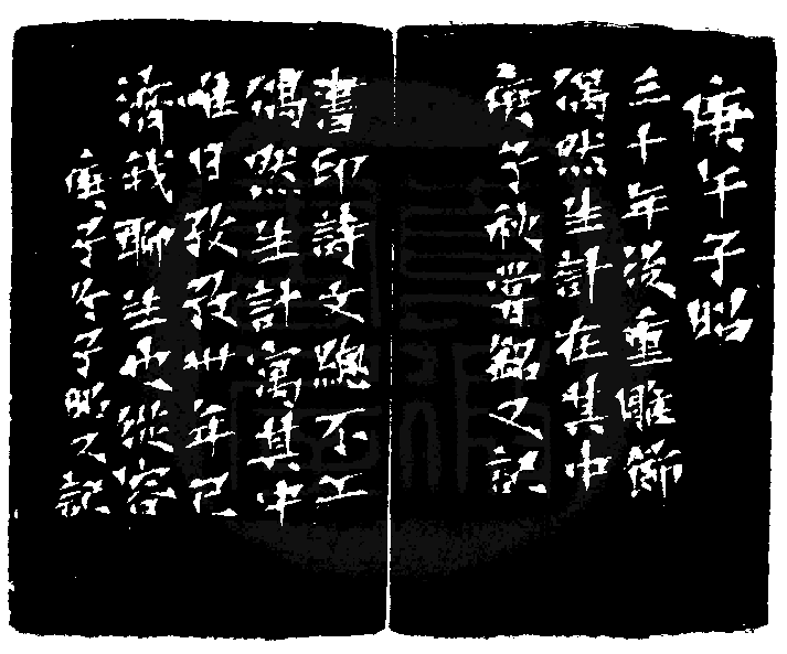 黃嘗銘.六十七歲/刻〔偶然生計在其中〕正方朱文印。邊款為【庚午,子昭。三十年後重雕飾,偶然生計在其中。庚子秋,又嘗銘記。書印詩文總不工,偶然生計寓其中。唯日孜孜卅年已,濟我聊生也從容。庚子冬,子昭又記。】巴林石。圓弧頂。