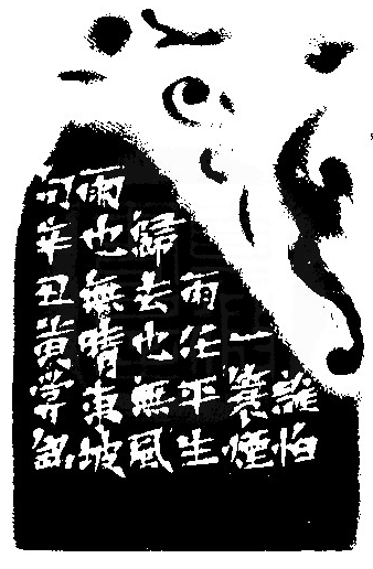 黃嘗銘.六十八歲/刻〔一簑煙雨任平生〕正方朱文印。邊款為【誰怕?一簑煙雨任平生。歸去,也無風雨也無晴。東坡句。辛丑,黃嘗銘。】老撾田黃石。巧色盤螭浮雕鈕。