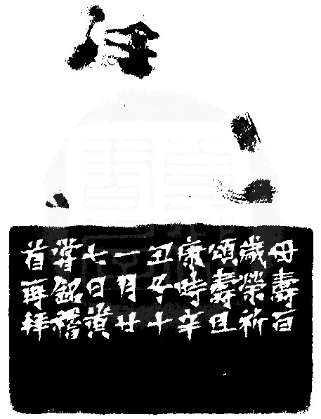 黃嘗銘.六十八歲/刻〔壽且康〕長方朱文印。邊款為【母壽百歲榮,祈頌壽且康。時辛丑冬十一月廿七日,黃嘗銘稽首再拜。】老撾田黃石。古獸鈕。