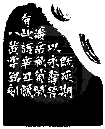 黃嘗銘.六十八歲/刻〔永壽〕長方朱文印。邊款為【既延期以永壽。晉潘岳《秋菊賦》有此語。辛丑臘八,黃嘗銘刻。】老撾田黃石。雙蝠浮雕鈕。