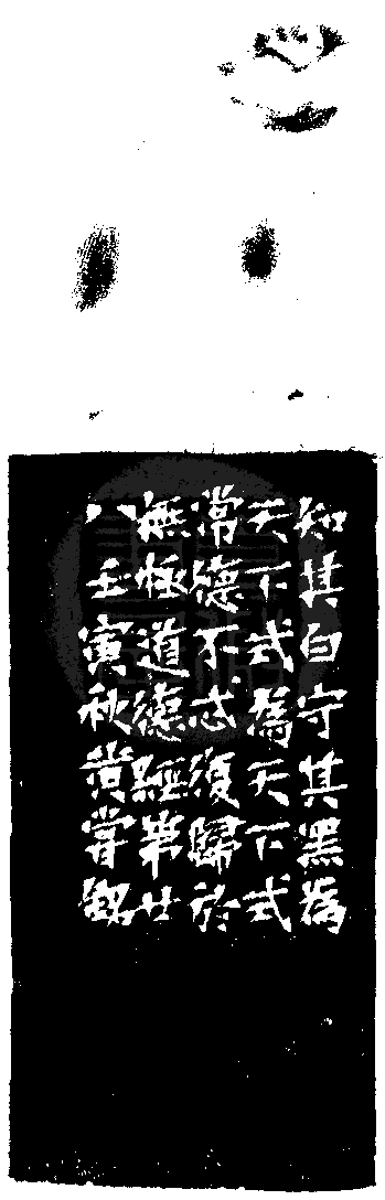 黃嘗銘.六十九歲/刻〔知白守黑〕正方白文印。邊款為【知其白,守其黑,為天下式。為天下式,常德不忒,復歸於無極。《道德經》第廿八。壬寅秋,黃嘗銘。】老撾石。古獸鈕。