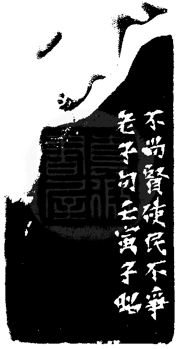 黃嘗銘.六十九歲/刻〔不尚賢〕正方朱文印。邊款為【不尚賢,使民不爭。《老子》句。壬寅,子昭。】老撾北黃白石。荷蛙鈕。